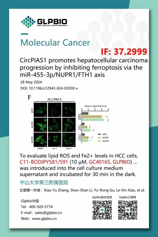 GLPbio C11 BODIPY 581/591 (GC40165) 助力中山大學第三附屬醫(yī)院發(fā)表高分文獻Molecular Cancer(IF:37.2999)
