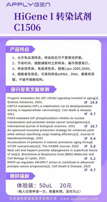 普利萊公司高效低毒性轉(zhuǎn)染試劑,siRNA/DNA/寡聚核苷酸都可以轉(zhuǎn),值得一試!